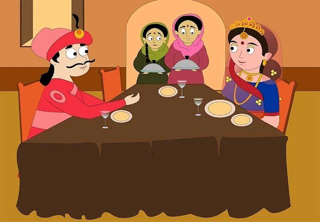 அப்போது ராணி, “பீர்பால், நாளை நாங்கள் உங்கள் வீட்டிற்கு விருந்துக்கு வருவோம்.